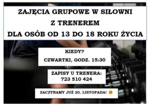 W związku z wieloma zapytaniami dotyczącymi korzystania z siłowni przez osoby poniżej 18 rż. informujemy, że już od przyszłego tygodnia będzie taka możliwość!